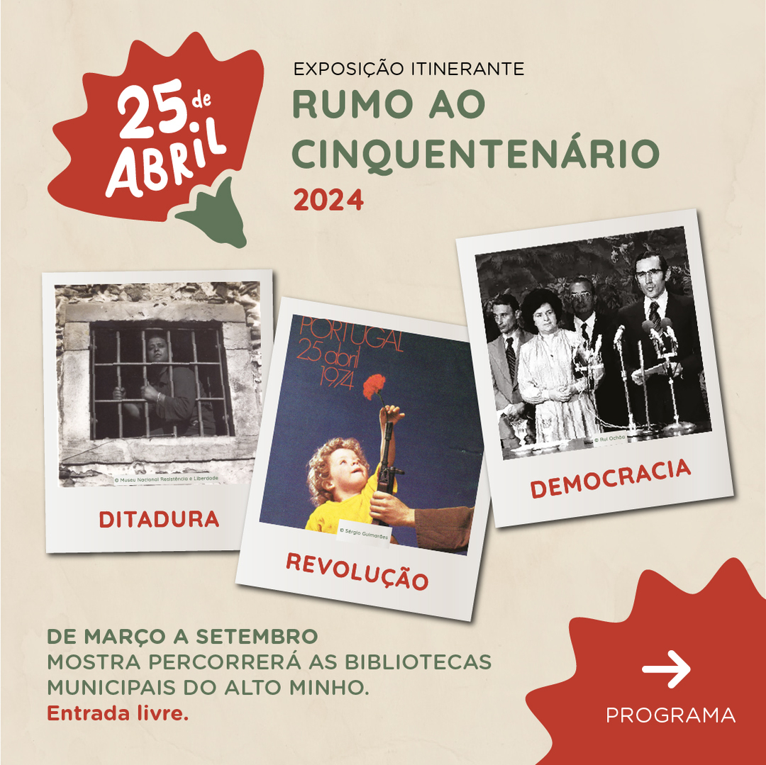 A mostra acontece em parceria com a RIBAM – Rede de Bibliotecas do Alto Minho e percorrerá as bibliotecas municipais do Alto Minho. O objetivo é dar conhecer e/ou relembrará alguns episódios marcantes da nossa história recente, que contribuíram para que Portugal se tornasse um país onde é possível viver de acordo com as escolhas políticas dos seus cidadãos, sem ditadores, nem guerra, nem censura e onde possa vigorar o direito e o respeito por cada um e por todos.