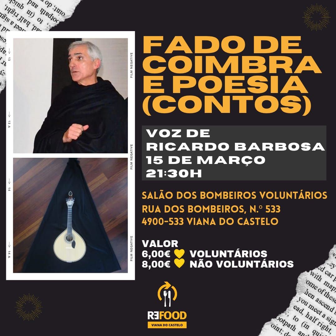 Ricardo Barbosa vai apresentar vários fados de Coimbra e contará ainda com momentos de poesia e contos. O valor da inscrição reverte inteiramente para a Refood Viana.