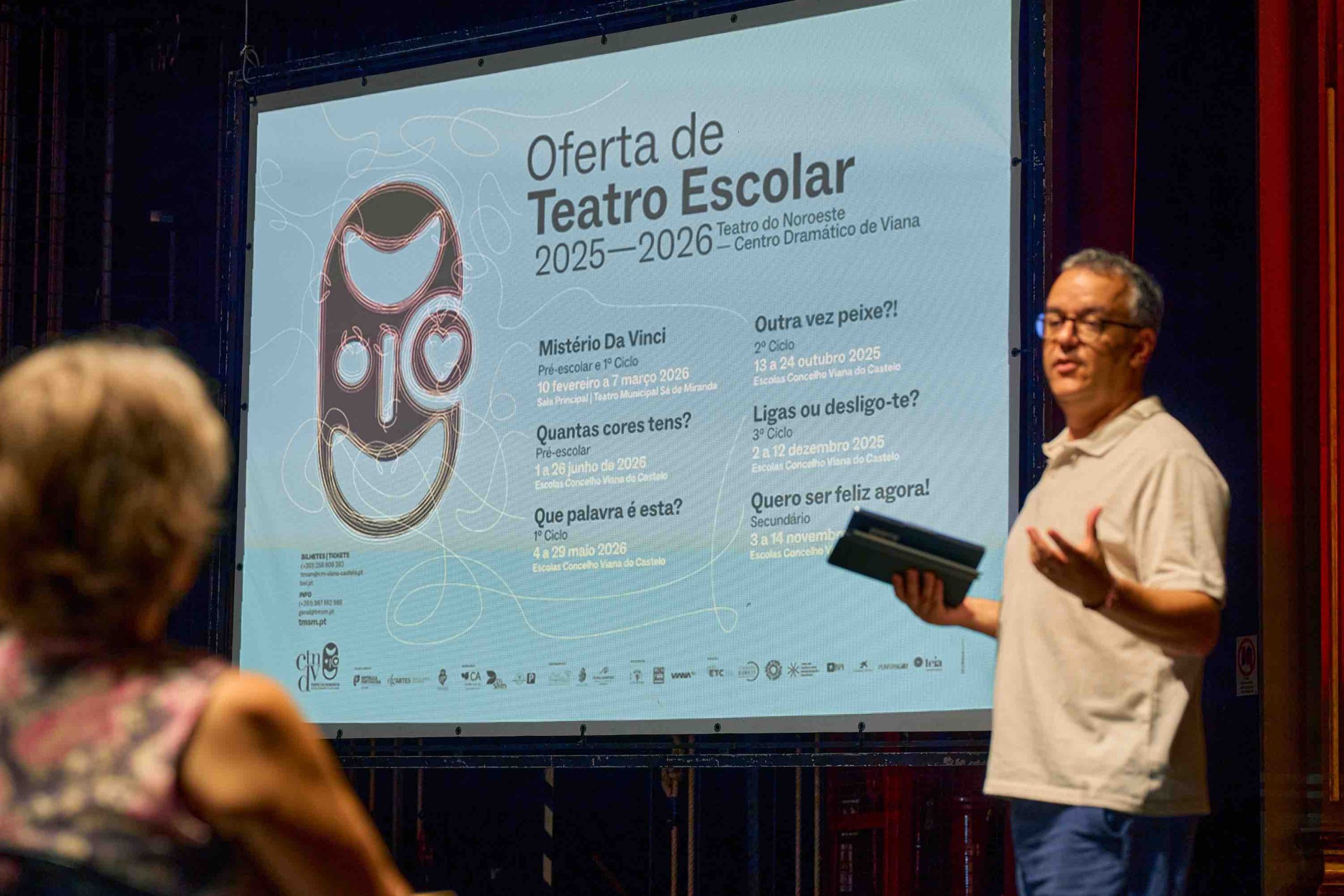 Finalmente, entre 10 de fevereiro e 07 de março de 2026, a Sala Principal do Teatro Municipal Sá de Miranda será o palco do espetáculo “Mistério Da Vinci”, que vai envolver a vinda de mais de 60 estabelecimentos de Educação Pré-Escolar e 1.º Ciclo ao teatro, numa viagem pelos múltiplos talentos do genial Leonardo da Vinci, que será dirigida por Adriel Filipe, marcando a sua estreia na encenação, por ocasião dos 35 Anos do Teatro do Noroeste – Centro Dramático de Viana que serão assinalados ao longo de todo o ano de 2026.