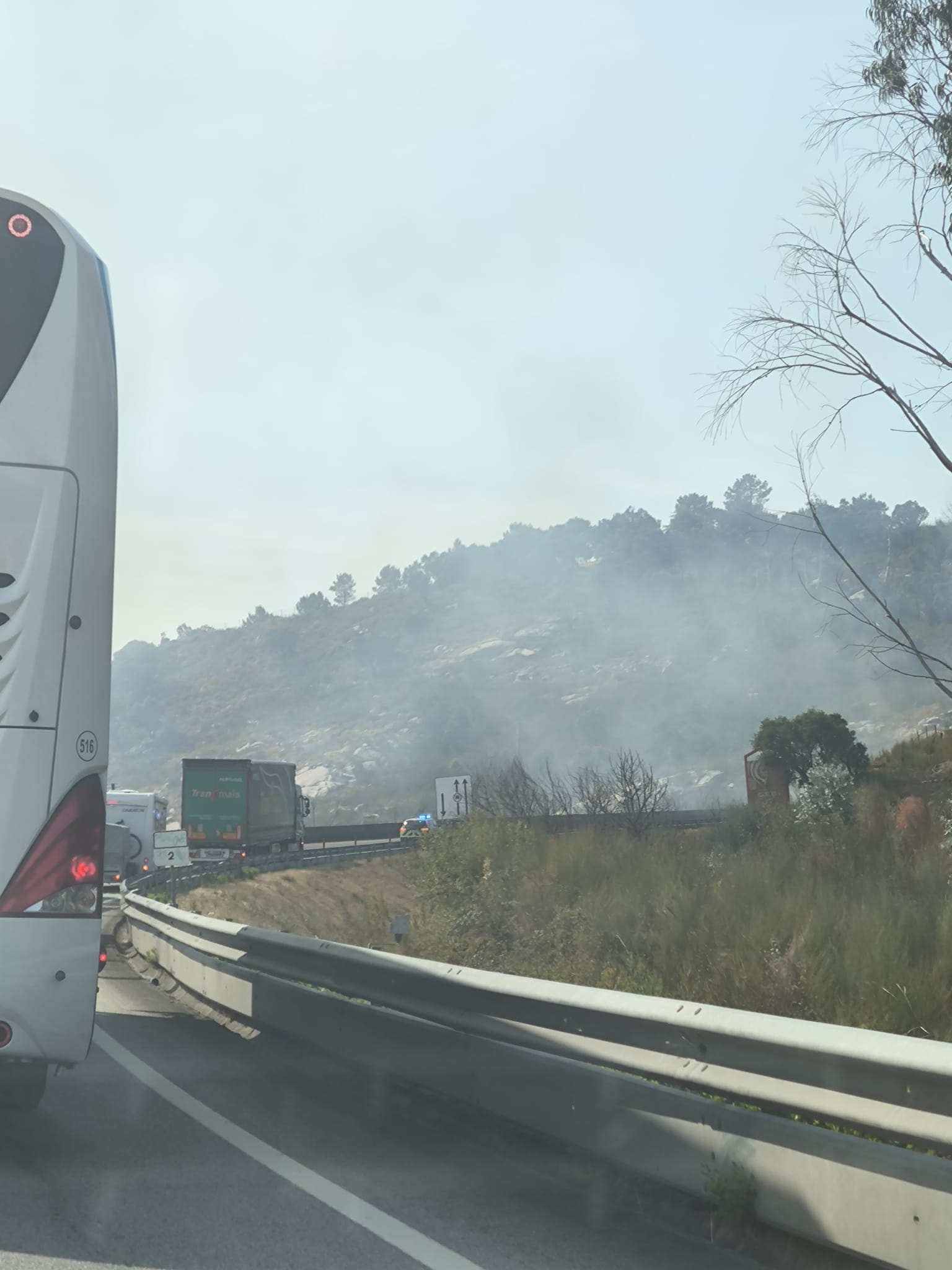 Um incêndio florestal na zona de Vilar de Mouros, em Caminha, condicionou o trânsito na A28.