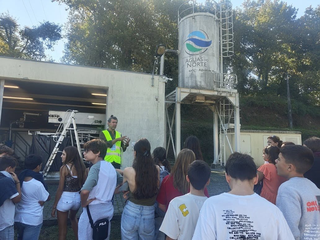 Durante a visita, os alunos puderam observar de perto o funcionamento da infraestrutura e compreender as várias fases do tratamento das águas residuais domésticas. A sessão foi dinamizada por Rui Pedro Sousa, técnico da Águas do Norte, que, de forma acessível e interativa, explicou os impactos ambientais da poluição da água e os benefícios de um sistema de saneamento eficiente.