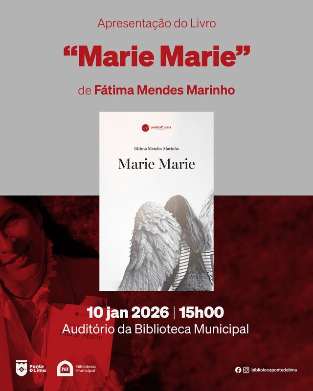 A Biblioteca Municipal de Ponte de Lima recebe, no próximo dia 10 de janeiro, pelas 15h, a apresentação do mais recente livro de Fátima Mendes Marinho, intitulado “Marie Marie”.
