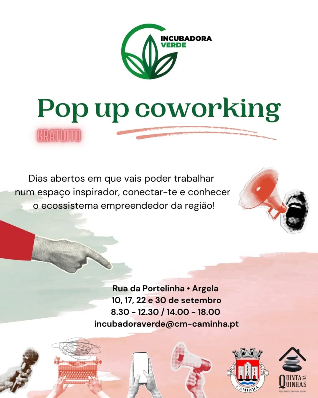 De 20 a 24 de setembro, o Município de Caminha desenvolve várias atividades para empreendedores. Em parceria com o Coworking da Quinta da Quinhas vão proporcionar encontros com empresários.