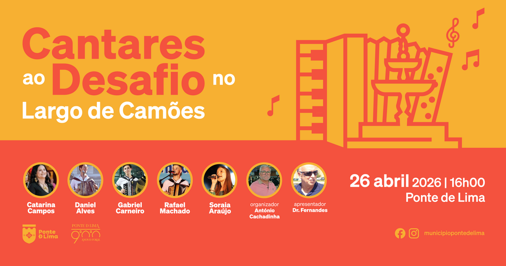 O Município de Ponte de Lima promove, no dia 26 de abril, às 16h, no Largo de Camões, mais uma sessão de Cantares ao Desafio.