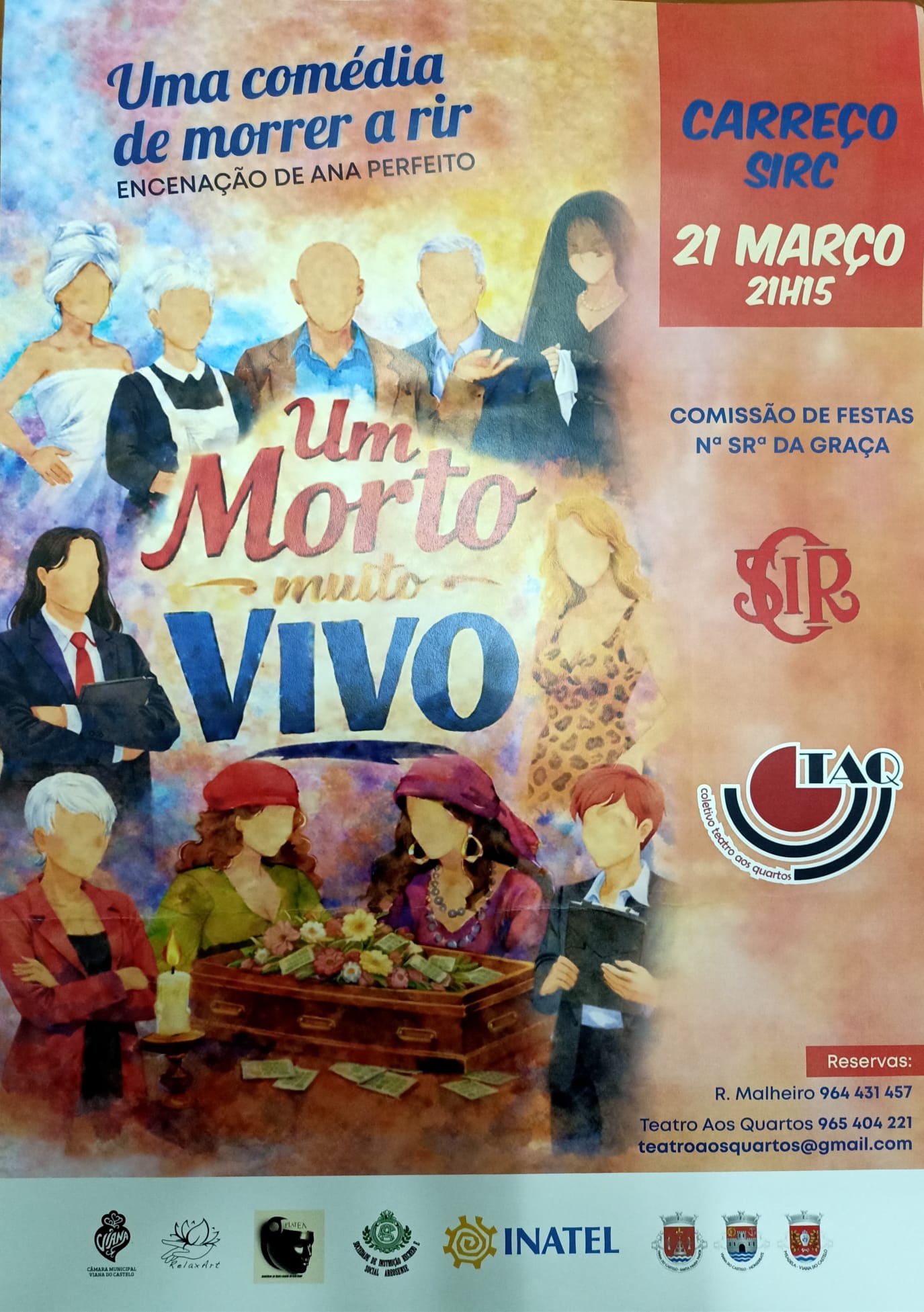 Continuando na senda da angariação de fundos para a realização da festa em honra da padroeira Nossa Senhora da Graça, a respetiva comissão não pára um momento. Agora, numa mudança brusca do que habitualmente costuma oferecer ao público, não apresenta nenhuma variante de gastronomia para alimentar o físico. Bem pelo contrário, agora apresenta uma peça de teatro para alimentação do …
