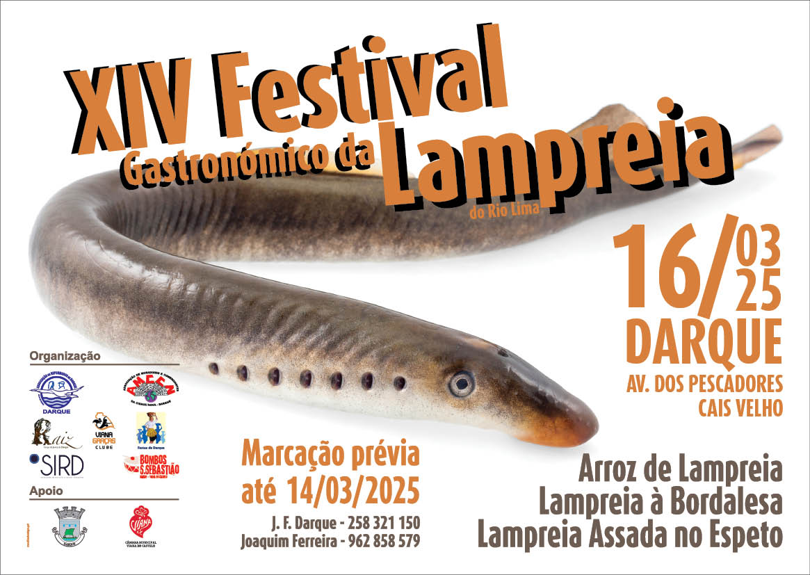 O Festival da Lampreia do rio Lima, habitualmente celebrado durante o mês de março, em Darque, comemora, no fim de semana que está por chegar, a 14.ª edição. É já no domingo, dia 16, na Associação de Reformados local, sita na Avenida dos Pescadores, que darquenses e gentes de outras proveniências voltam a juntar-se à mesa. Arroz de lampreia, Lampreia …