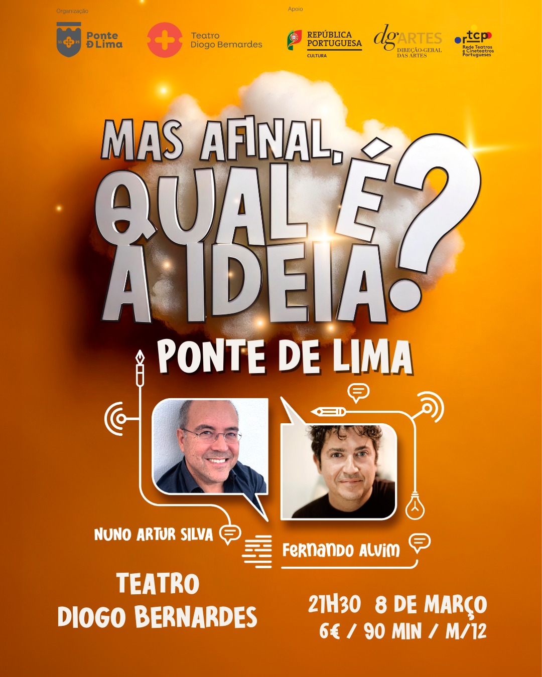 No sábado, dia 08 de março, às 21h30, o Município Ponte de Lima apresenta no Teatro Diogo Bernardes o espetáculo de comédia, “Mas afinal, qual é a ideia Ponte de Lima?” com Nuno Artur Silva e Fernando Alvim.