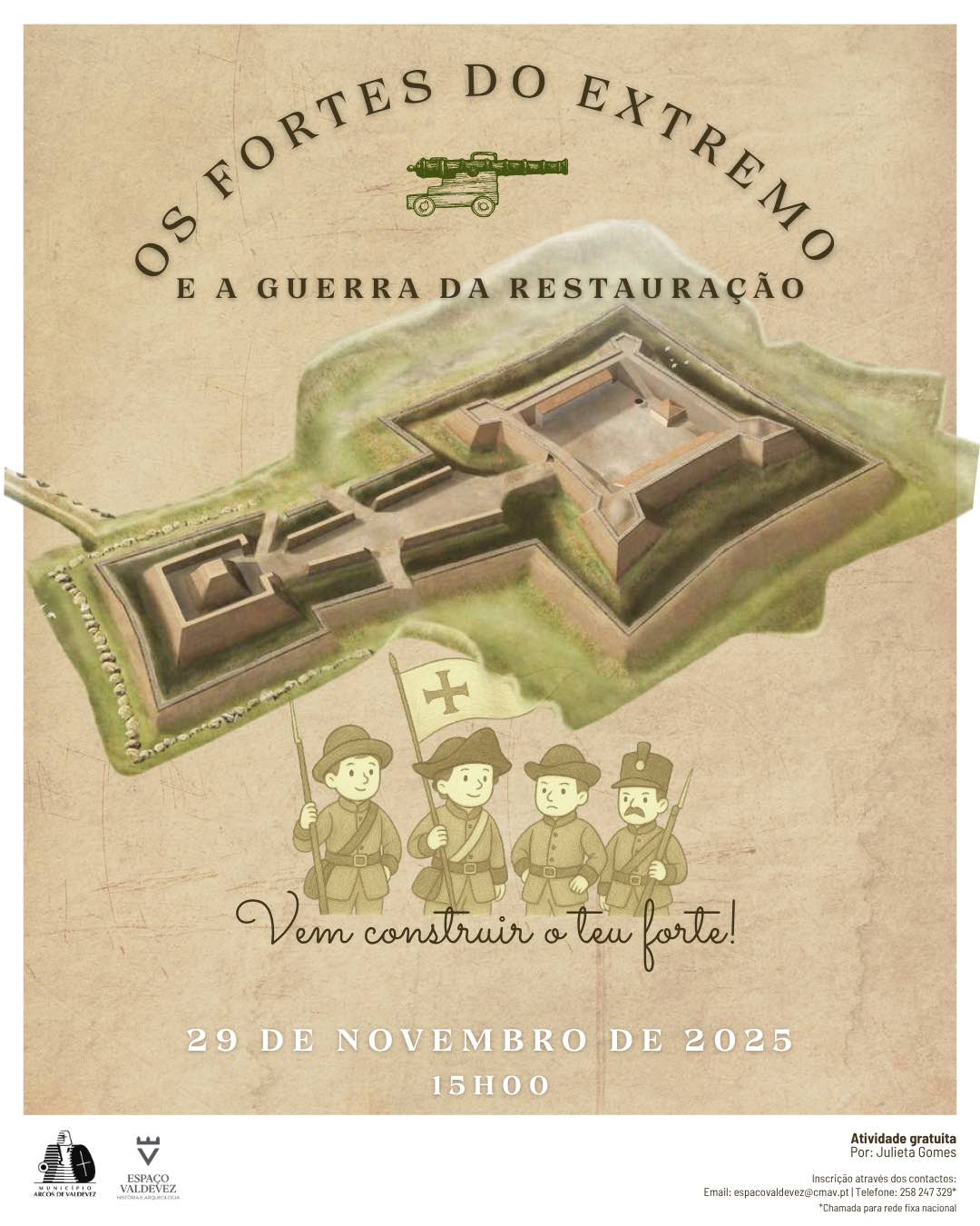 “Um jogo de estratégia humana em que os pequenos poderão assumir diferentes papéis (sentinelas, mensageiros, comandante, entre outros) e enfrentar desafios ligados ao contexto da Restauração da Independência. O objetivo é promover a assimilação da história através de situações práticas, colaborativas e divertidas”, refere fonte da autarquia.