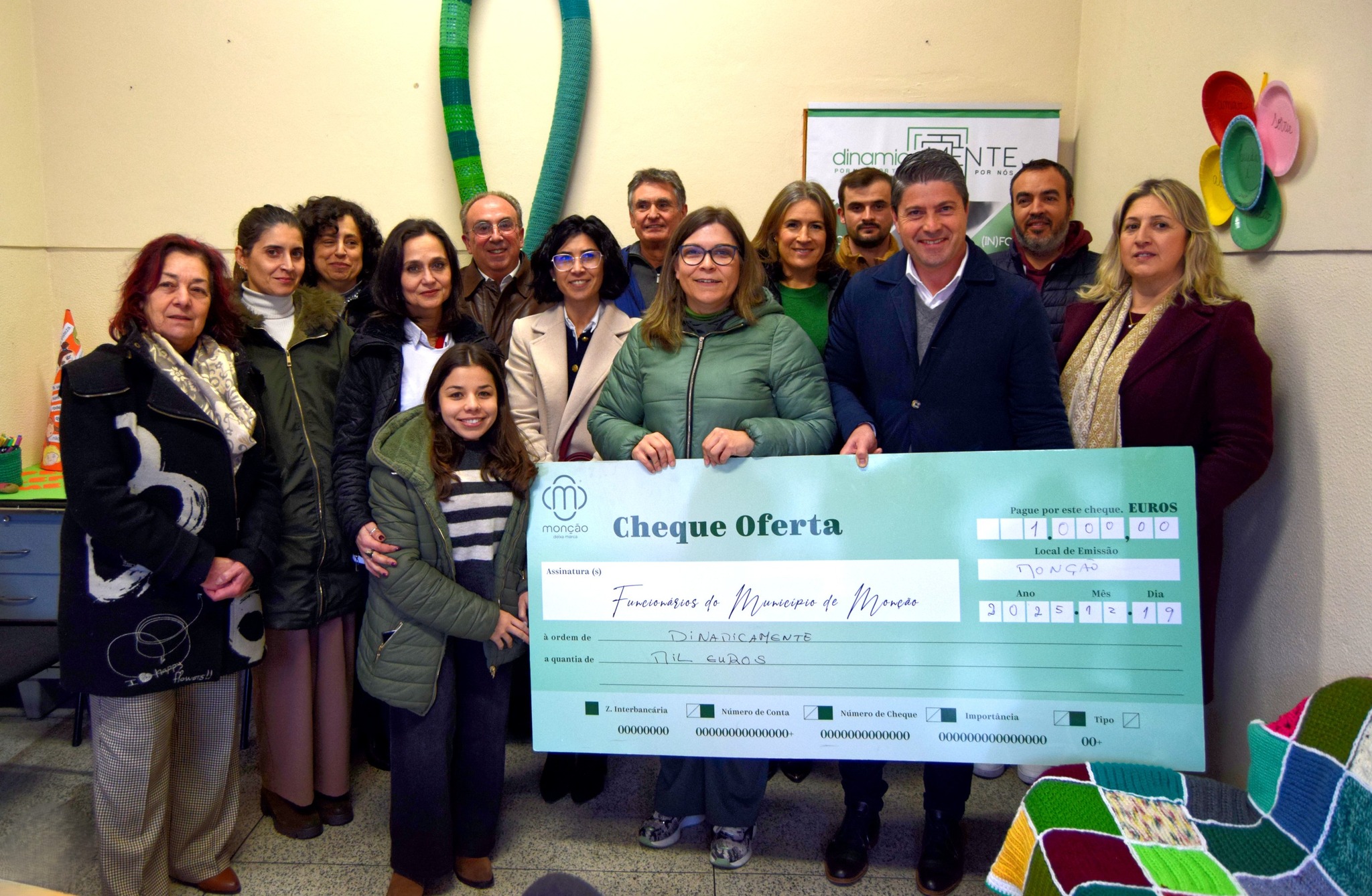 Os funcionários da Câmara Municipal de Monção procederam, ontem à tarde, à entrega de um cheque solidário à Associação “Dinamicamente”. O donativo, no valor de 1.000,00 €, resultou da inscrição dos funcionários da autarquia monçanense no último Jantar de Natal, realizado no dia 19 de dezembro, no Restaurante “Encosta do Crasto”.