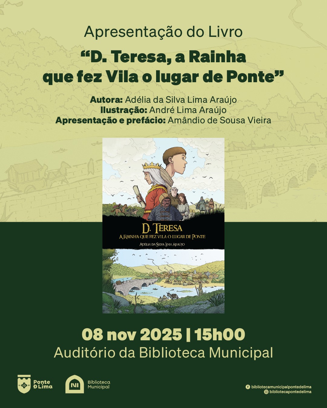Este sábado, às 15h, o auditório da biblioteca Municipal acolhe o lançamento do livro “D. Teresa, a Rainha que fez Vila o lugar de Ponte”.