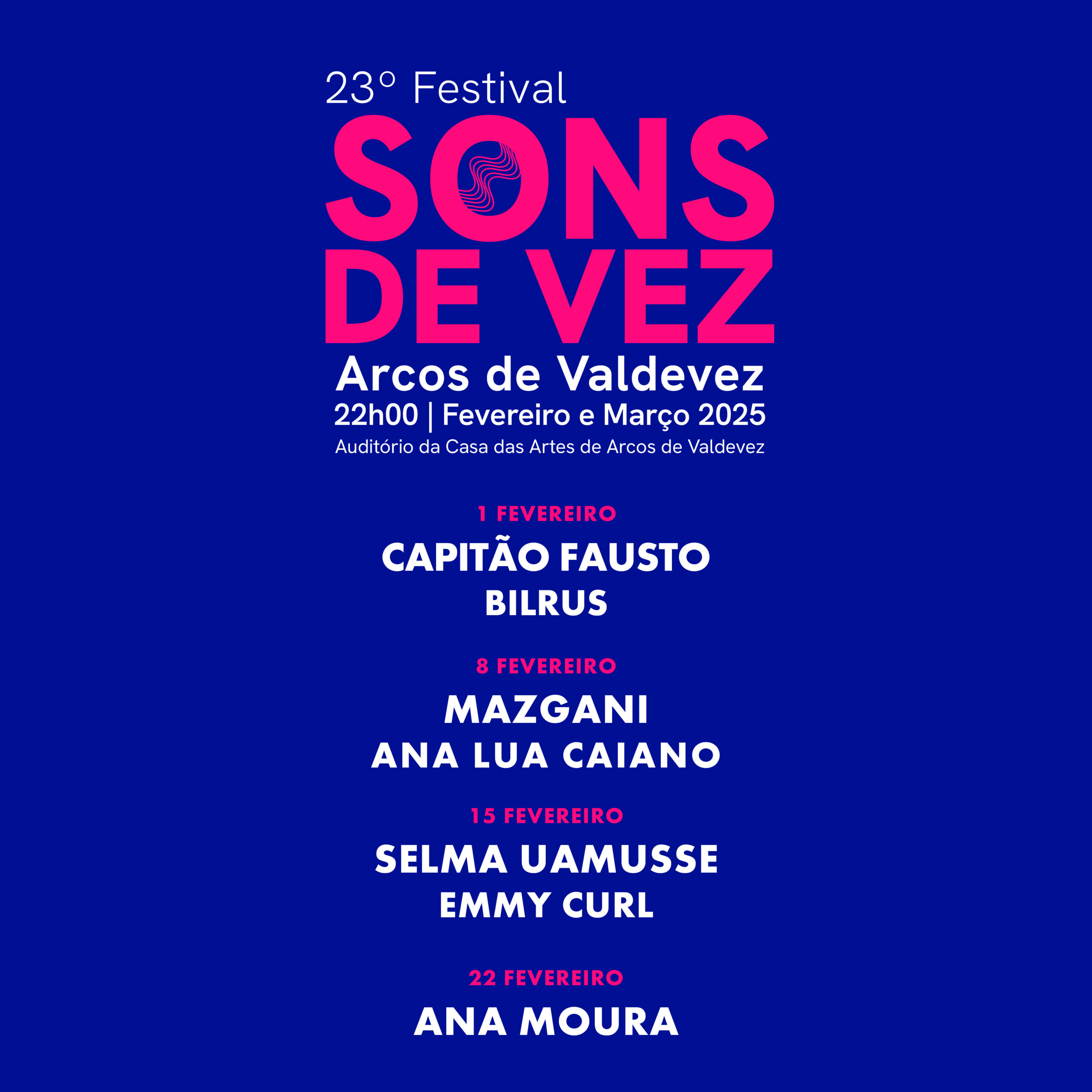 No sábado seguinte, a 15 de fevereiro, Selma Uamusse chega a Arcos de Valdevez com um manifesto de esperança, numa celebração pela liberdade e amor. A música e as suas raízes moçambicanas são o mote para uma viagem espiritual que mistura africanidade com influências do rock, eletrónica, afro-beat e experimental. Emmy Curl junta-se ao cartaz no mesmo dia para uma homenagem à herança cultural portuguesa. Pastoral, o seu mais recente álbum, celebra o folklore português e as paisagens mágicas do interior do país.