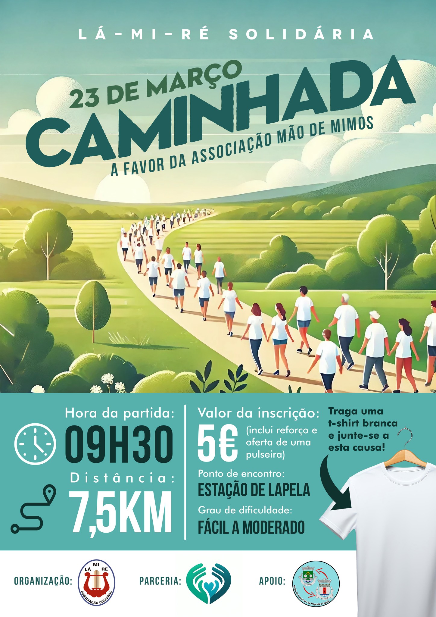 No dia 23 de março, a Associação Lá Mi Ré promove uma caminhada solidária a favor da Associação Mãos de Mimo, que apoia pessoas com deficiência. As inscrições já estão abertas.