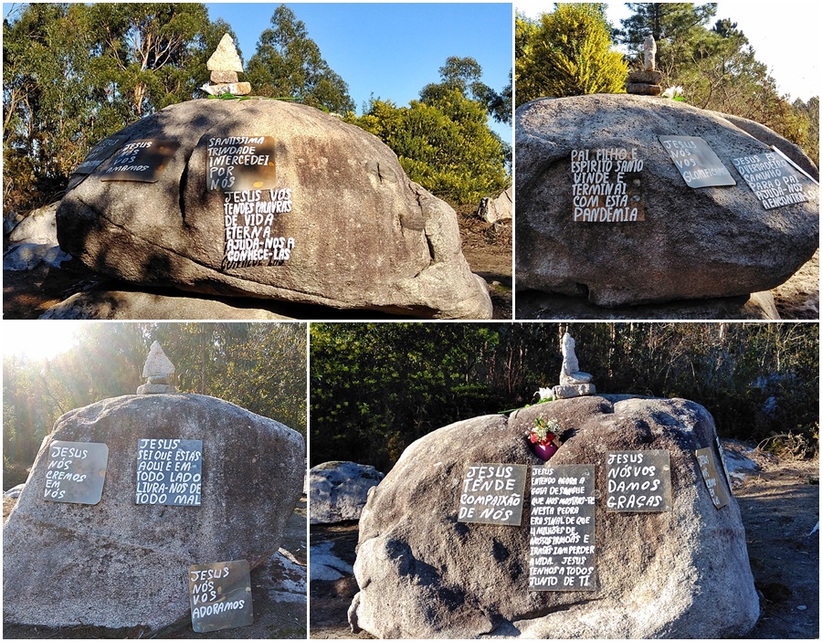 Durante os confinamentos por que passámos, muitas foram as pessoas que ganharam hábitos de caminhar pelo monte. Ao verem fotos do local colocadas na Internet, muita gente quis visitar o monumento, e houve quem lhe desse o nome de Nossa Senhora do Covid. Visitei-o novamente há uns dias e verifiquei que ainda perdura e está para ficar, pois o local está limpo, renovado e tem sempre flores frescas num local da pedra.