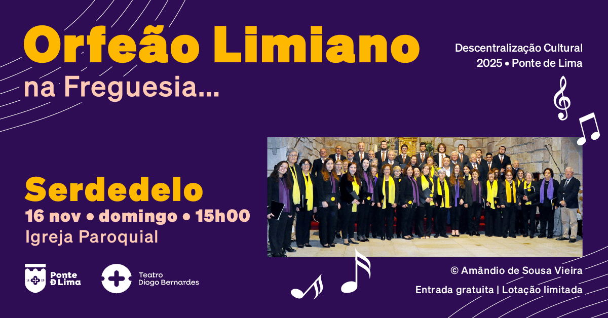 No próximo domingo, dia 16 de novembro, às 15h, a freguesia de Serdedelo acolhe um concerto do Orfeão Limiano.