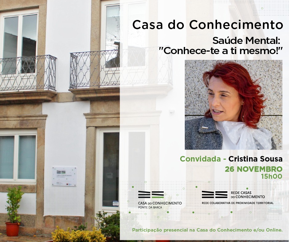 No dia 26 de novembro, às 15h, a Casa do Conhecimento de Ponte da Barca recebe a conferência “Saúde Mental – Conhece-te a ti mesmo”.