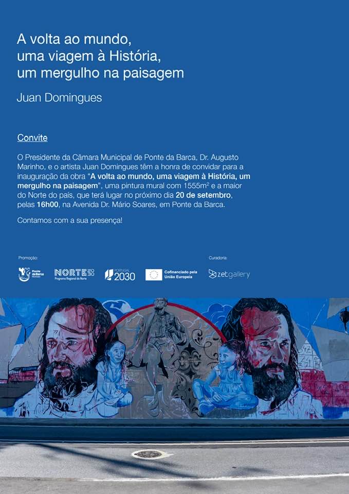 No próximo sábado, dia 20 de setembro, será inaugurado na Avenida Mário Soares, em Ponte da Barca, um dos maiores murais artísticos do Norte de Portugal. A obra, com 1.555 metros quadrados de área e 300 metros lineares, é da autoria do artista venezuelano Juan Domingues e tem como figura central Fernão de Magalhães, e a sua viagem de circum-navegação.