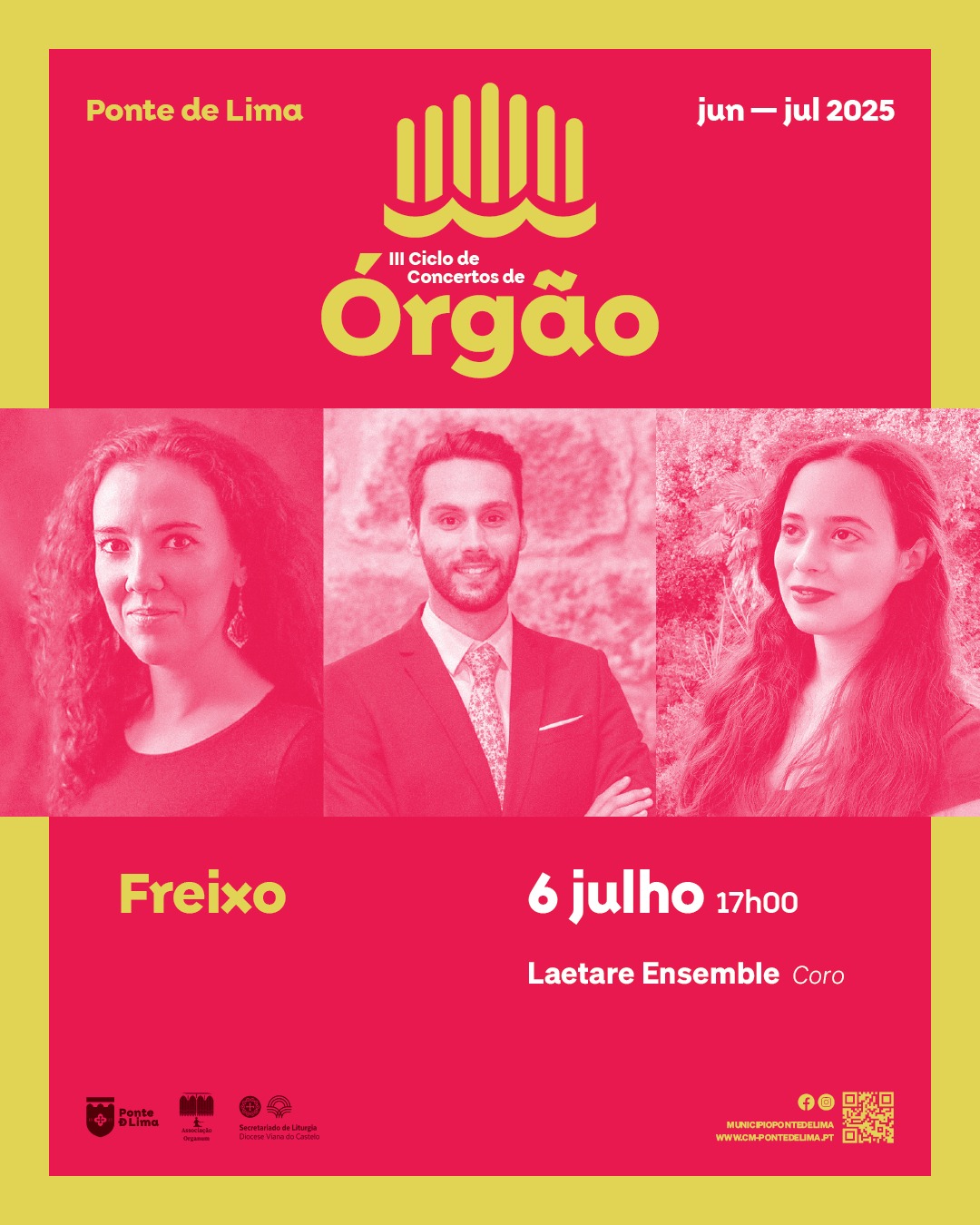A 06 de julho, às 17h, o Município de Ponte de Lima apresenta o III Ciclo de Concertos de Órgão, com Laetare Ensemble, em Freixo.