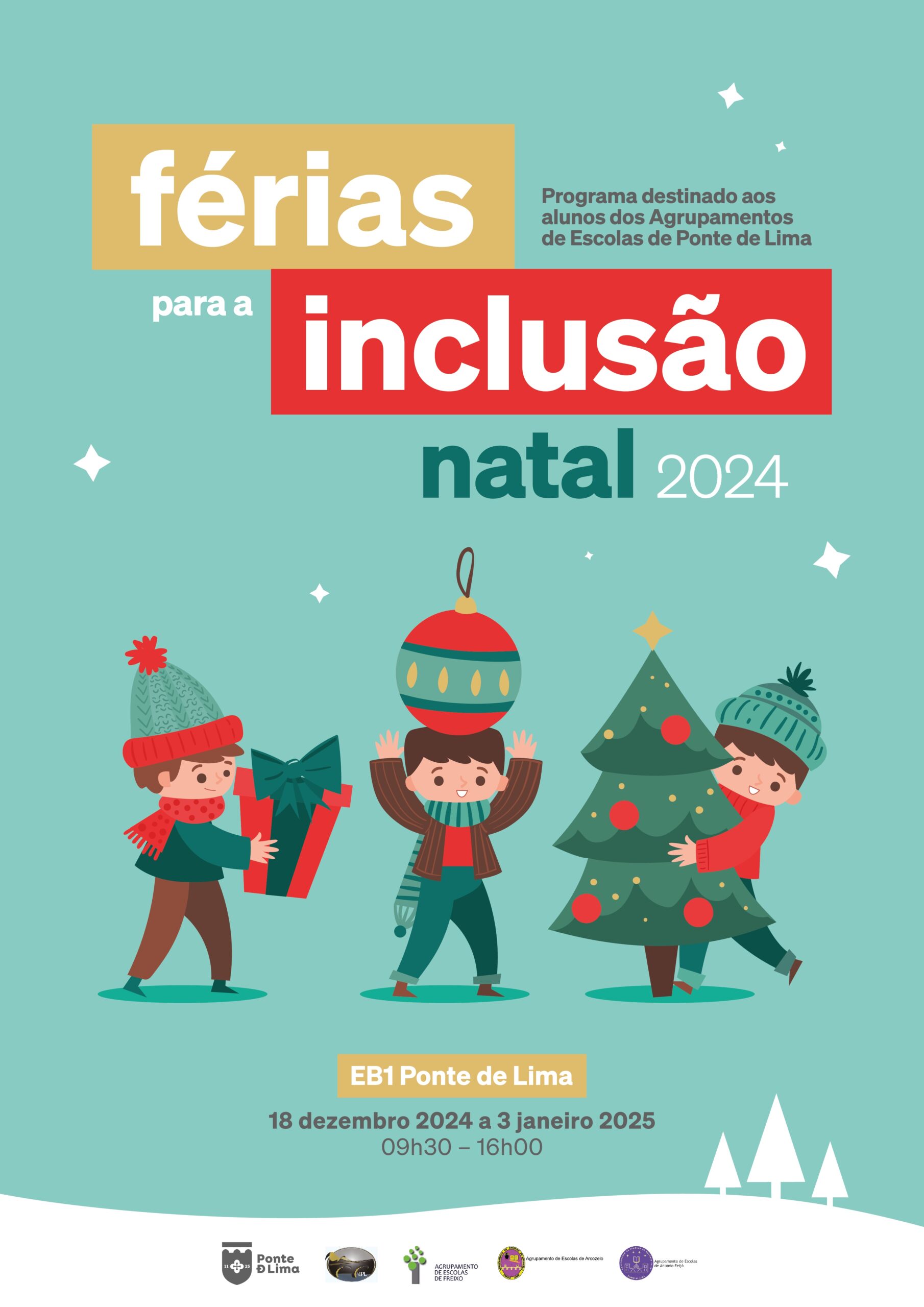 Como é habitual e no âmbito da promoção da inclusão de grupos de maior vulnerabilidade, o Município de Ponte de Lima, promove mais um Programa de Férias para a Inclusão, que decorre entre os dias 18 de dezembro de 2024 e 03 de janeiro de 2025, nas instalações da EB 1 de Ponte de Lima, entre as 9h30 e as 16h.