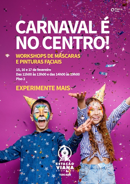 O Estação Viana Shopping prepara-se para celebrar o Carnaval com uma experiência gratuita pensada especialmente para os mais pequenos. Nos dias 15, 16 e 17 de fevereiro, o centro comercial convida as famílias a entrarem no espírito festivo com workshops de máscaras de Carnaval e pinturas faciais, onde a imaginação será a protagonista.