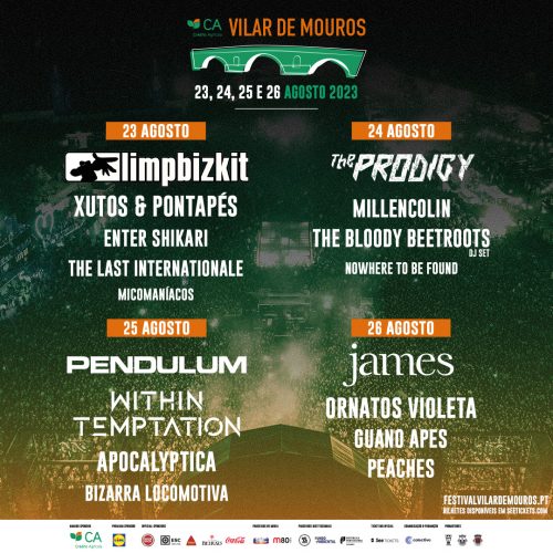 Limp Bizkit, The Prodigy, James, Pendulum, Within Temptation, Xutos e Pontapés, Ornatos Violeta, The Bloody Beetroots DJ set, Millencolin, Peaches, Guano Apes, Enter Shikari, Apocalyptica, Bizarra Locomotiva, The Last Internationale, Nowhere To Be Found e Micomaníacos são os nomes confirmados para quatro dias de música.