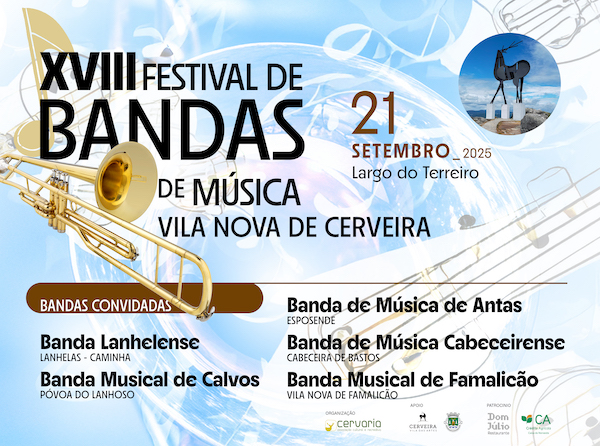 O Município de Vila Nova de Cerveira associa-se à Cerveira – Associação Cultural e Recreativa na realização do XVIII Festival de Bandas de Música, agendado para este domingo, 21 de setembro, no Terreiro, entre as 10h e as 19h.