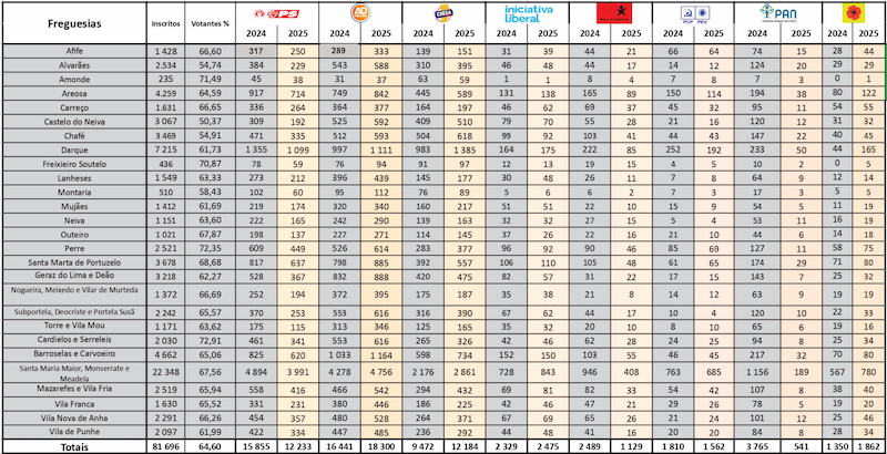 A AD (PSD/CDS) voltou a vencer as eleições no Alto Minho, desta vez em todos os 10 concelhos do distrito e subindo de dois para três deputados eleitos. O Chega passou de 3º para 2º partido mais votado, mantendo um deputado eleito. Já o PS ficou na 3ª posição e perdeu um deputado (José Maria Costa). No conjunto do distrito …