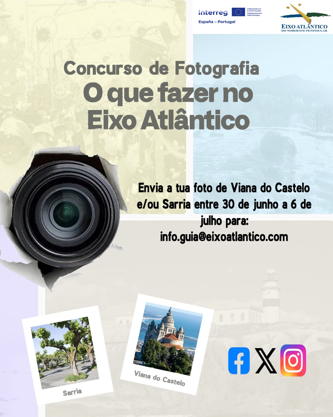 O Eixo Atlântico lança, pela primeira vez, um concurso fotográfico aberto aos cidadãos, no qual os participantes deverão captar em imagens o espírito dos municípios de Sarria e Viana do Castelo. As fotografias apresentadas competirão entre si, sendo que a que tiver mais “likes” nas redes sociais oficiais do Eixo Atlântico será a vencedora. Esta ação insere-se no projeto do Guia Turístico Digital do Eixo Atlântico.