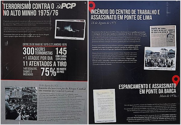 No Largo de São Domingos, em Viana, a organização local do PCP, de forma documental, expõe o que foi o horror da ação terrorista levada a cabo no período imediato ao 25 de Abril, entre maio de 1975 e janeiro de 1976. O PCP recorda o acto de: 300 ações terroristas, 145 com carga explosiva, à média de um ataque …