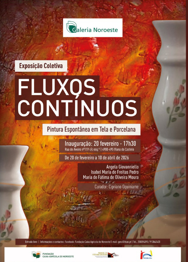 Três mulheres apresentam obras na mostra “Fluxos Contínuos”, que conjuga 16 pinturas em telas/papel e cerâmica. A iniciativa é promovida pela Fundação Maria de Fátima Moura, que surgiu há 20 anos e pretende promover a cultura e as artes. Luís Moura Serra, que criou o organismo numa homenagem à mãe, já falecida, refere que o objetivo passa por apoiar artistas que estão a dar os primeiros passos na escrita, pintura e demais artes.