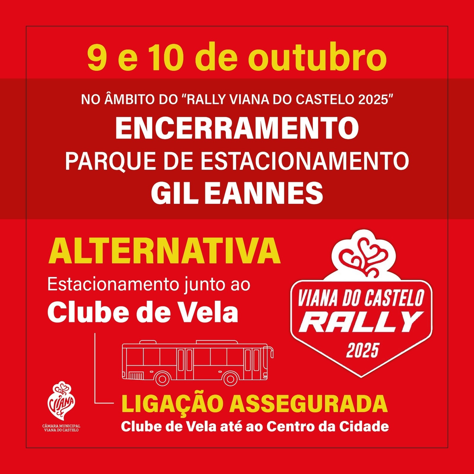 O parque de estacionamento Gil Eannes está encerrado hoje e amanhã devido ao Rally de Viana, que se realiza manhã e sábado no concelho.