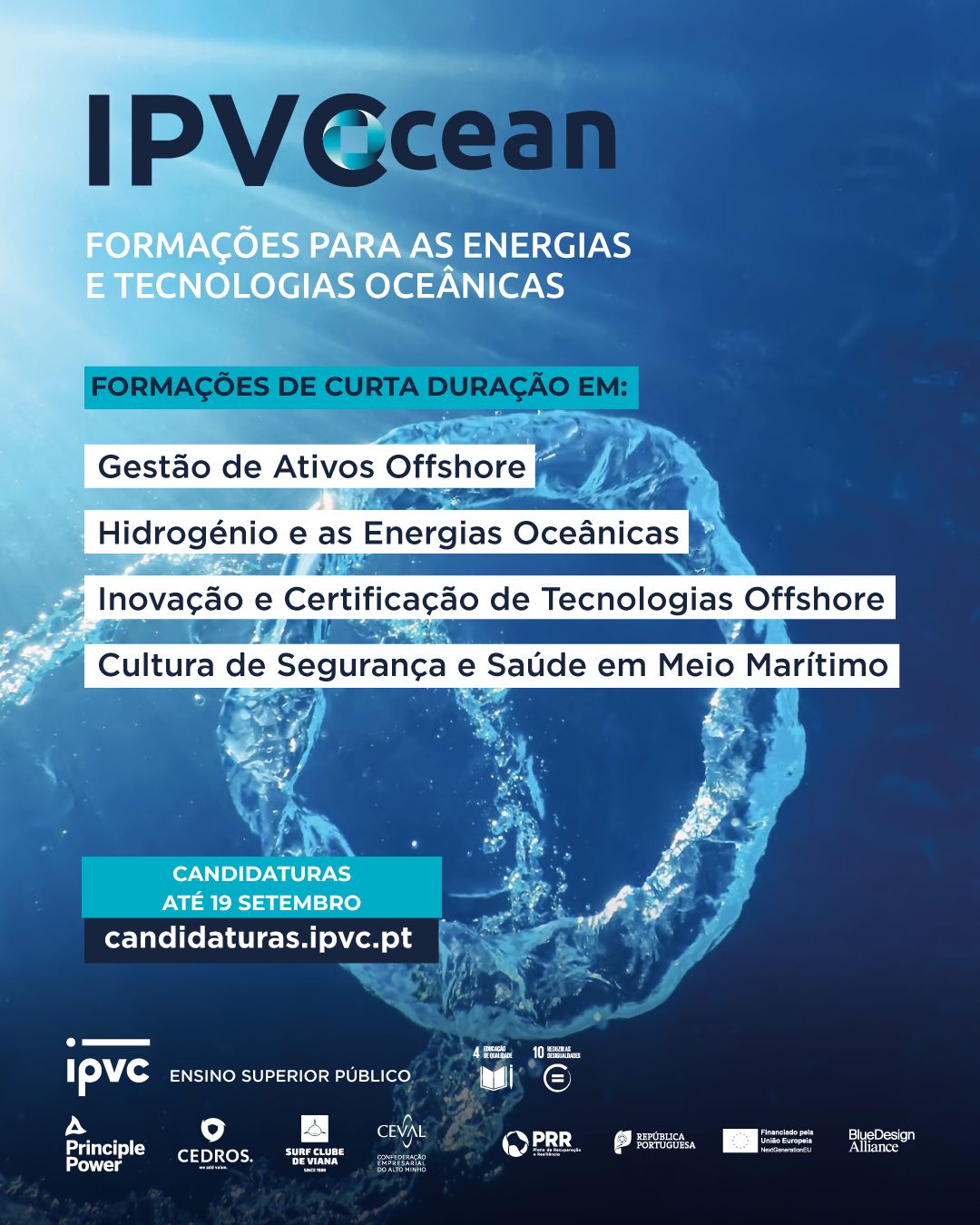 O Politécnico de Viana do Castelo (IPVC) alargou, até amanhã, 19 de setembro, o período de candidaturas às formações microcredenciadas de curta duração nas áreas da energia, inovação e sustentabilidade em contexto marítimo. Dirigidas a quem procura reforçar competências técnicas e científicas na economia azul, estas formações são desenvolvidas no âmbito do programa IPVC Ocean, com financiamento do PRR – BDA (Plano de Recuperação e Resiliência – Base de Dados de Acreditação).