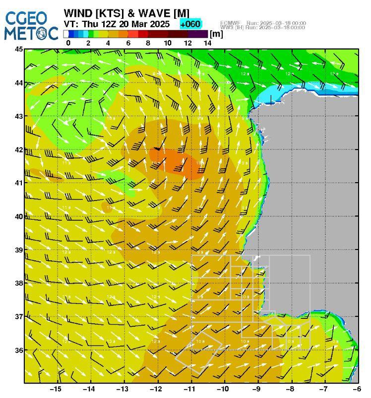 A agitação marítima será caracterizada por uma ondulação proveniente do quadrante sul-sudoeste, com uma altura significativa que poderá atingir os cinco metros e uma altura máxima de nove metros, com um período médio a variar entre os nove e os 12 segundos. São esperados ventos provenientes do quadrante sul-sudoeste, com uma intensidade média de até 84km/h e rajadas até 152km/h.