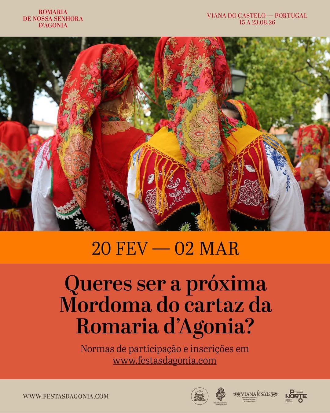 Romaria d’ Agonia abre concurso para a Mordoma do cartazA Romaria d’Agonia abre concurso para a Mordoma do cartaz. … 19 de Fevereiro, 2026 Viana do Castelo