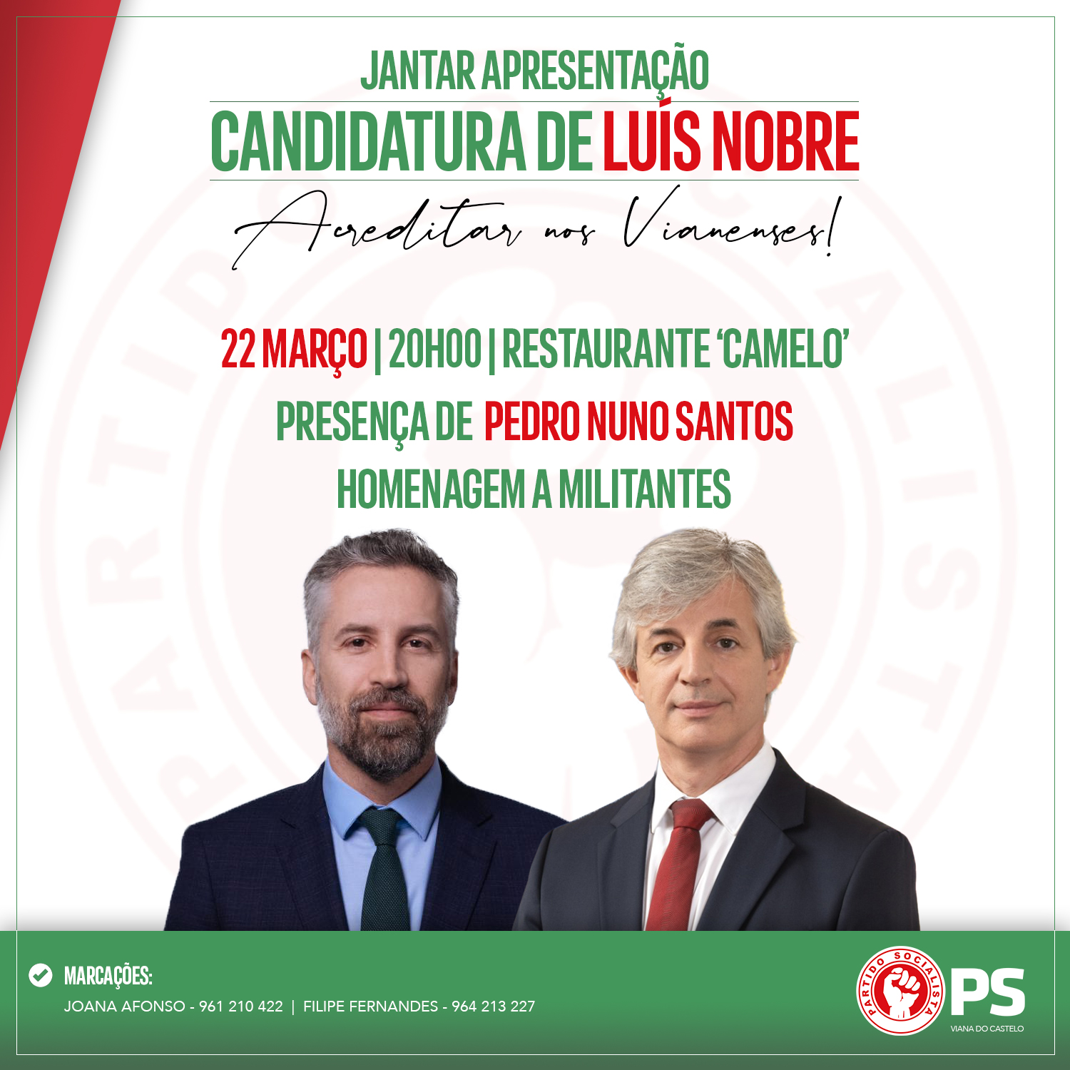 O encontro está marcado para o restaurante Camelo, em Santa Marta de Portuzelo, às 20h, e contará ainda com homenagem a militantes do Partido Socialista de Viana do Castelo.