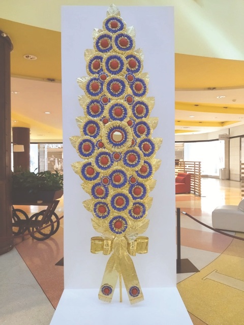 “Esta peça, de 2,5 metros de altura, foi desenvolvida com as técnicas tradicionais e materiais habitualmente usados pelos artesãos da região. Foi totalmente feito à mão e contou com o auxílio das artesãs da “Casa Sales – Riba de Âncora”, sendo o maior Palmito alguma vez construído”.