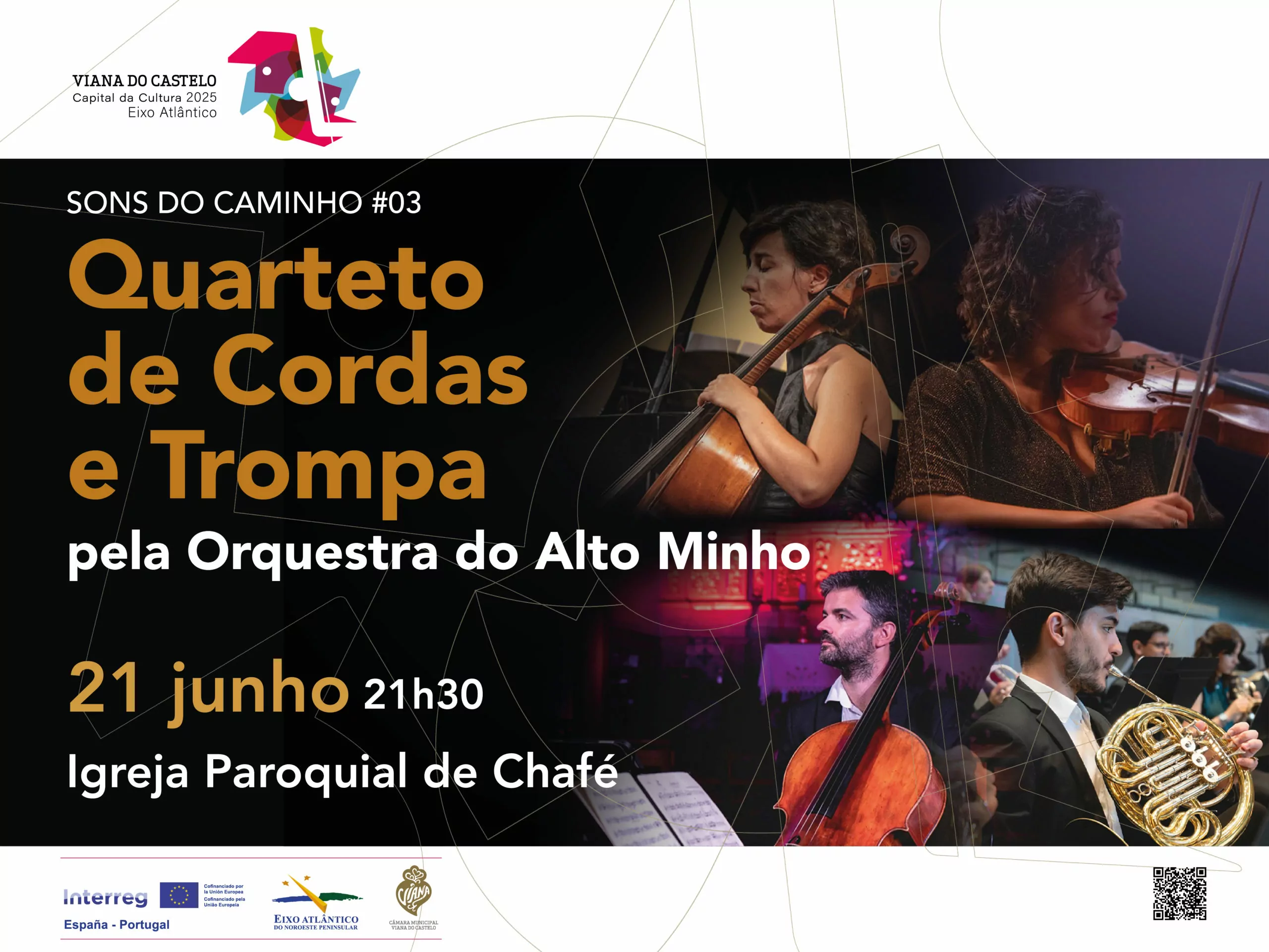 No dia 21 de junho, às 21h30, a igreja de Café acolhe o concerto de Quarteto de Cordas e Trompa da Orquestra do Alto Minho.
