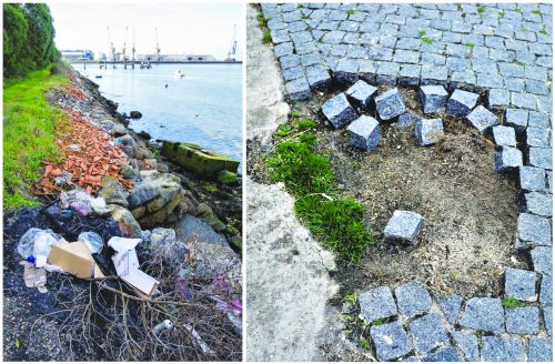 Fica o alerta para que, logo que possível, se repare e alinde o que não nos fica bem. A cratera no pavimento fica em frente à “torre dos pilotos” e os lixos acumulados estão do outro lado da ponte Eiffel, como é bem visível na imagem. Tudo à volta do rio, do Lethes, que pede que o poetizem, mas com boas condições de ser gozado. P.J.