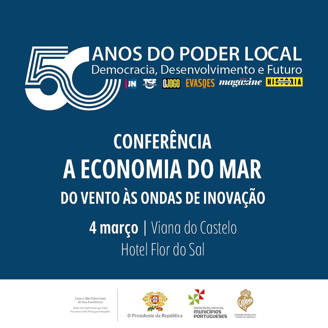 Hoje, dia 04 de março, Viana do Castelo acolhe a conferência “A Economia do Mar – Do vento às ondas de inovação”, no âmbito dos 50 anos do Poder Local, num evento com Alto Patrocínio do Presidente da República e o apoio da Associação Nacional de Municípios Portugueses e da Câmara Municipal de Viana do Castelo.