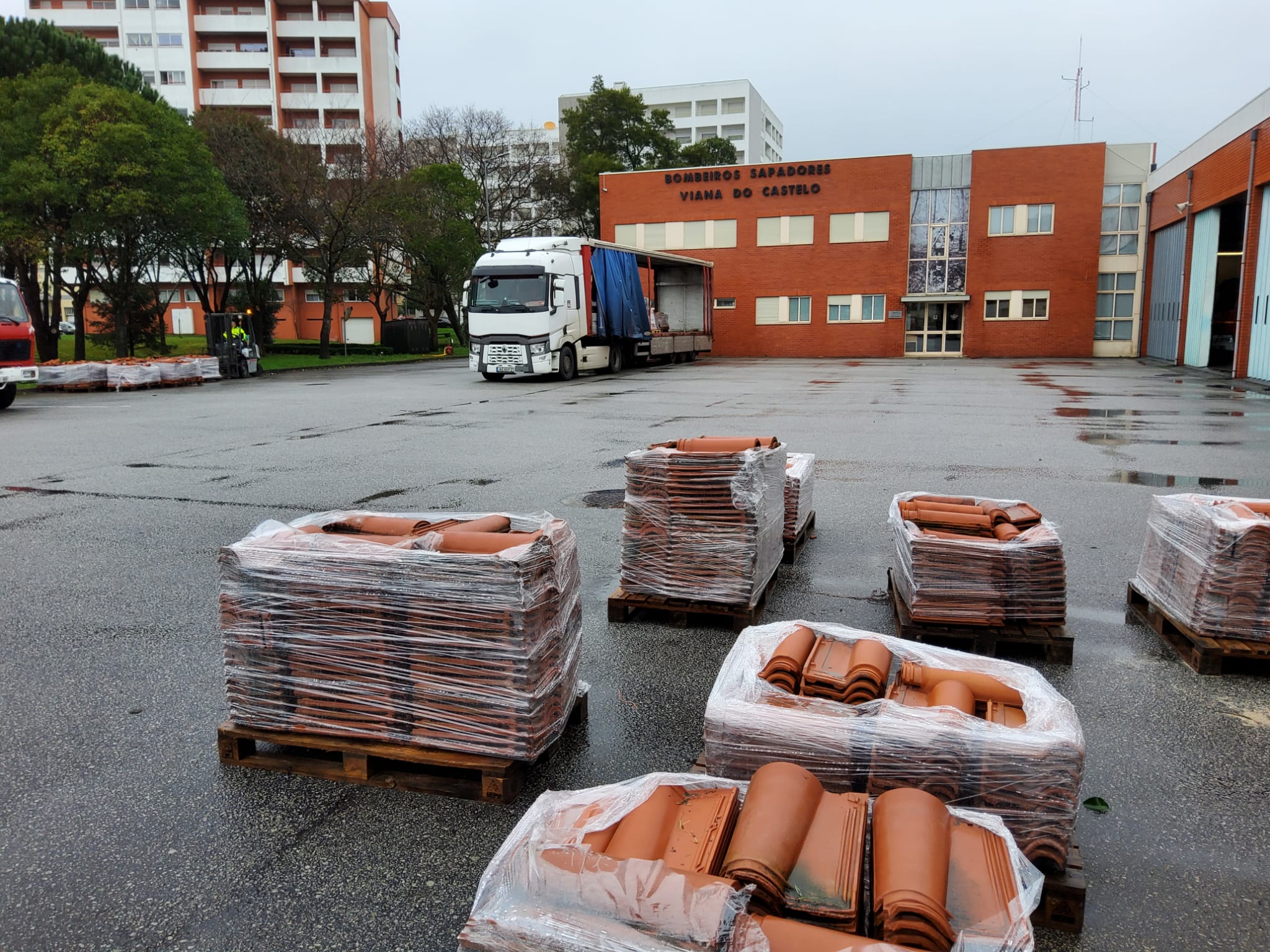 Mais um camião carregado de material de construção seguiu de Viana para apoiar as vítimas da tempestade Kristin, que causou elevados prejuízos na região de Leiria.