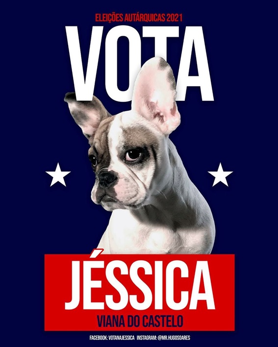 Jéssica é o nome da cadela do humorista vianense Hugo Soares e que está também na corrida eleitoral para as próximas autárquicas. Os vídeos das redes sociais já se tornaram virais e os flyers com algumas propostas já circulam em alguns cafés do concelho.